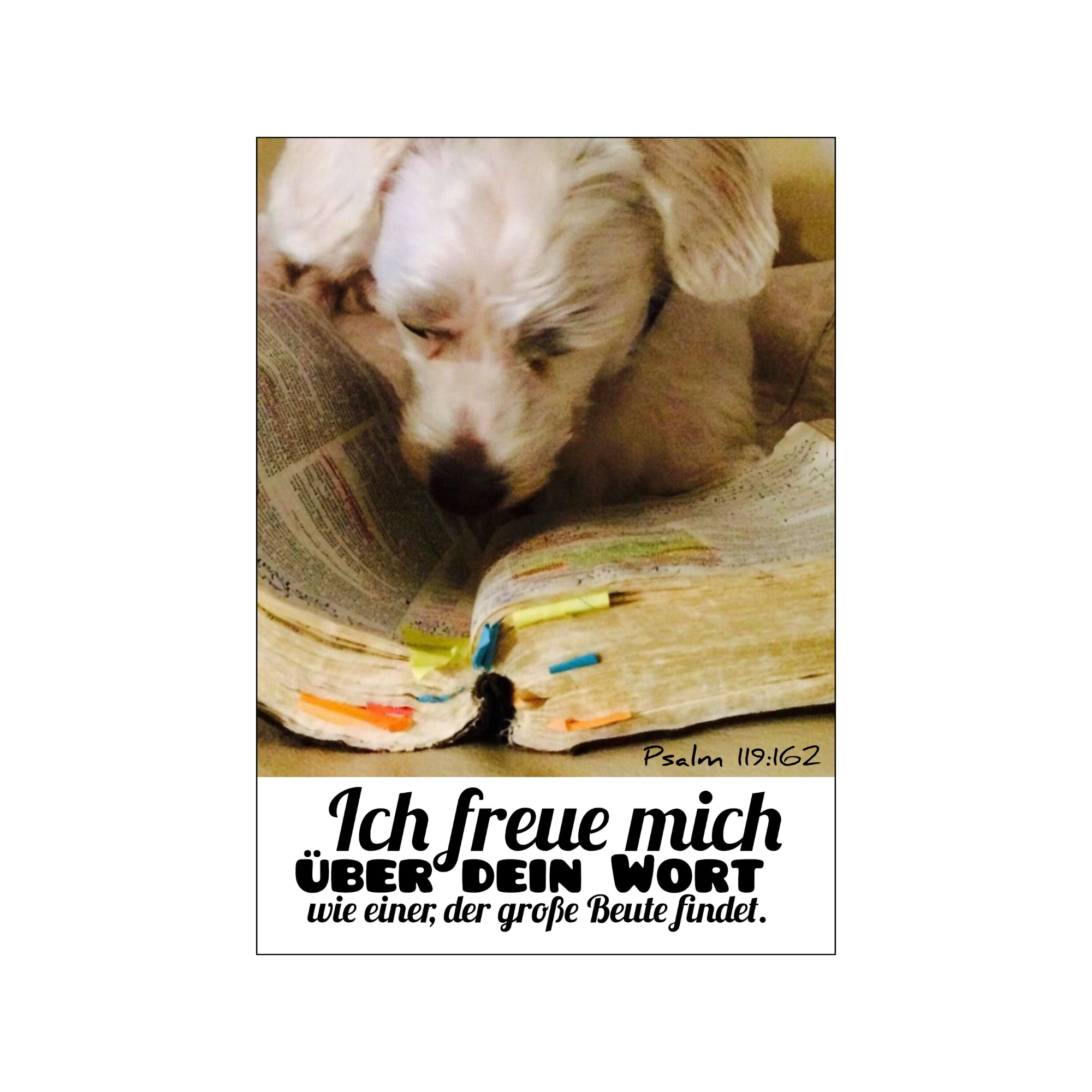Eine Postkarte mit Bibelvers aus Psalm 119:162