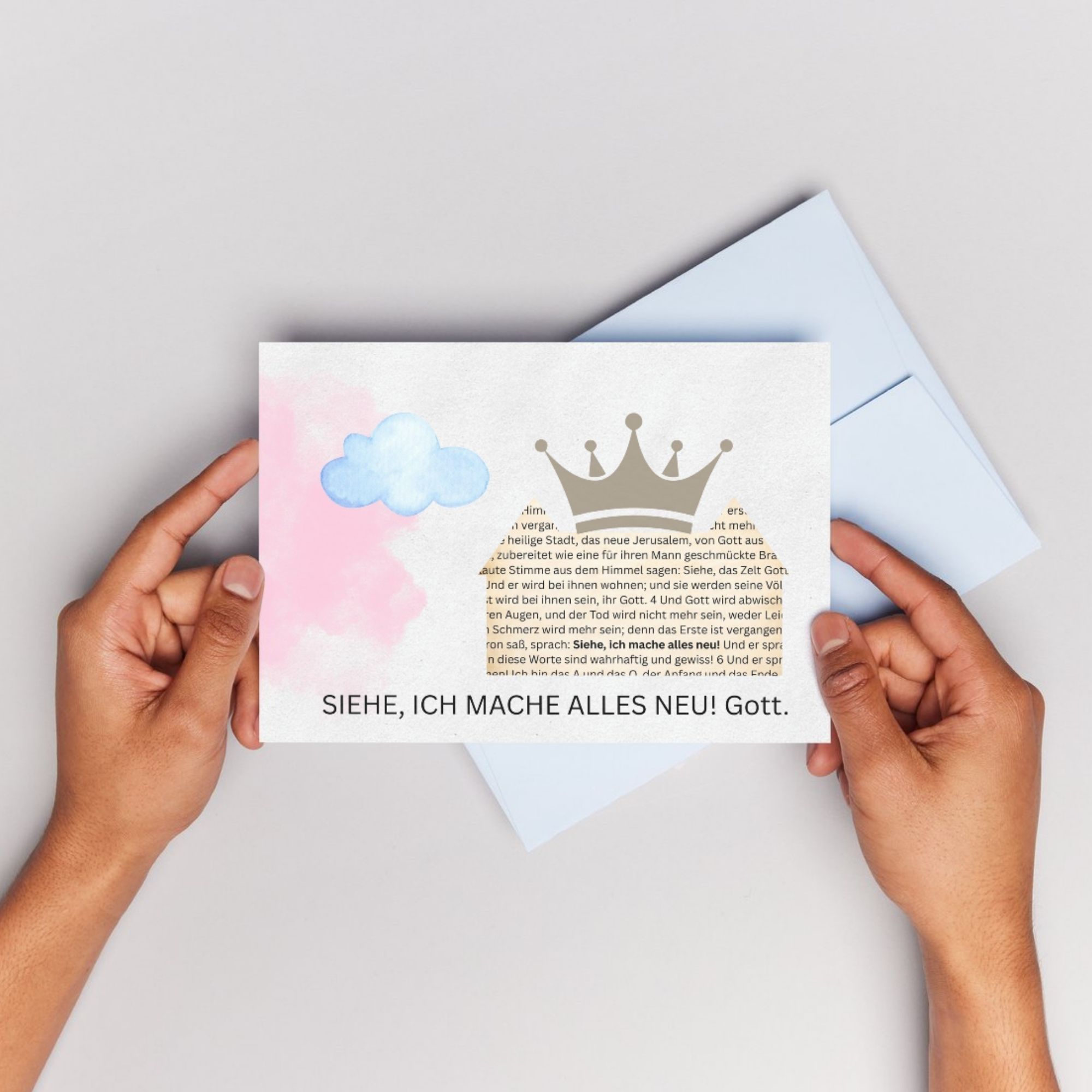 In der „himmlischen Stadt“ ist die Bibelstelle aus Offenbarung 21:5 im biblischen Zusammenhang sichtbar.